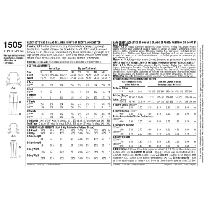 Get comfortable in this loungewear for husky boys and big and tall men. Pattern includes color block long sleeve knit top and drawstring pants or shorts with elastic waist. pants can be knit or woven.