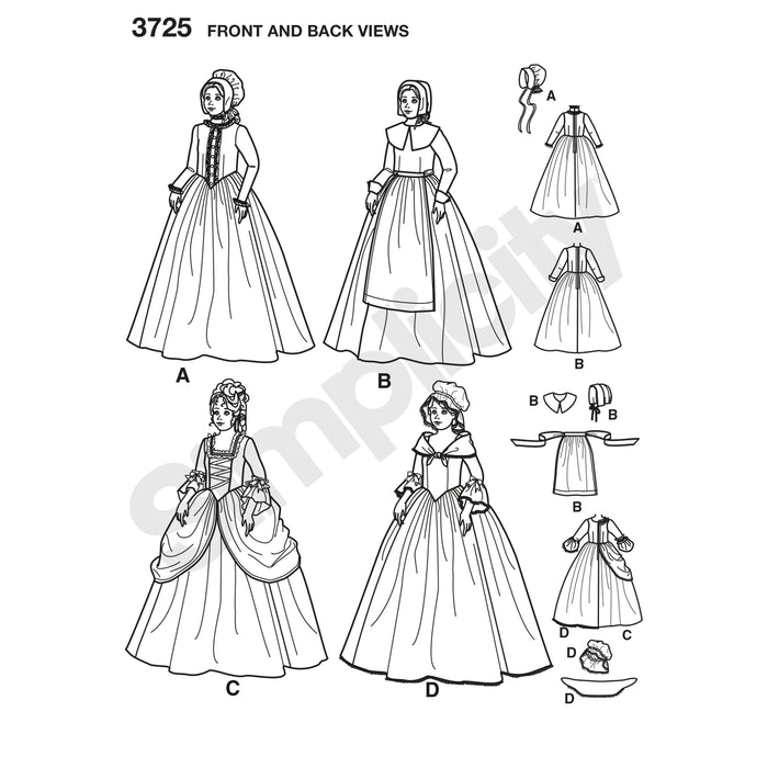 These historically-themed Child's and Girls' costume dresses will serve for a prairie settler, Quaker, colonial, or more courtly young lady.