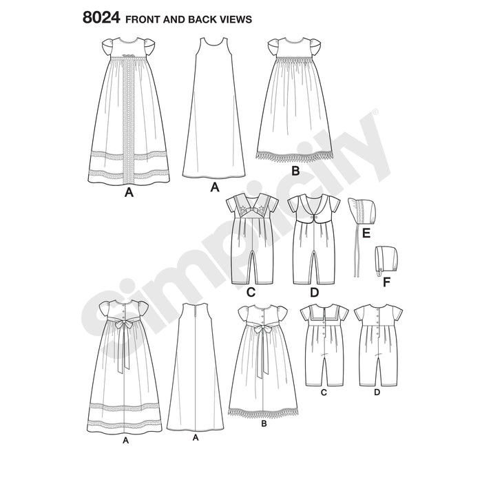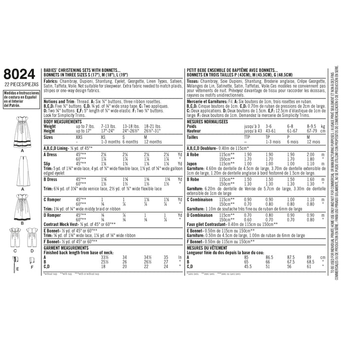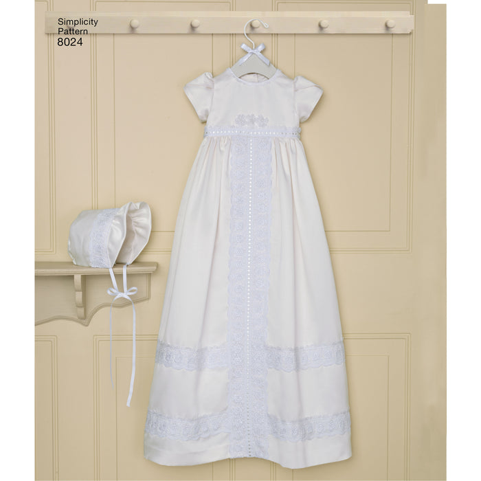 8024 Babies' Christening Sets with Bonnets. Size: XXS-M (0-12 m)