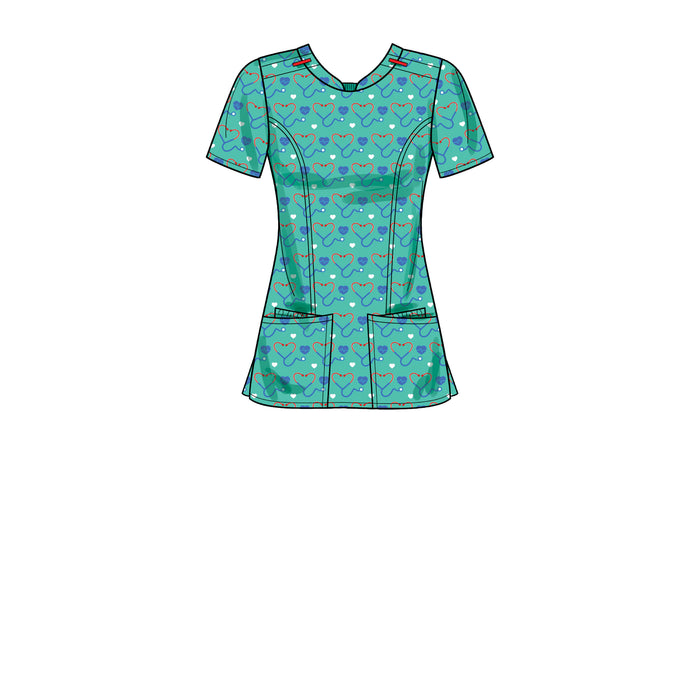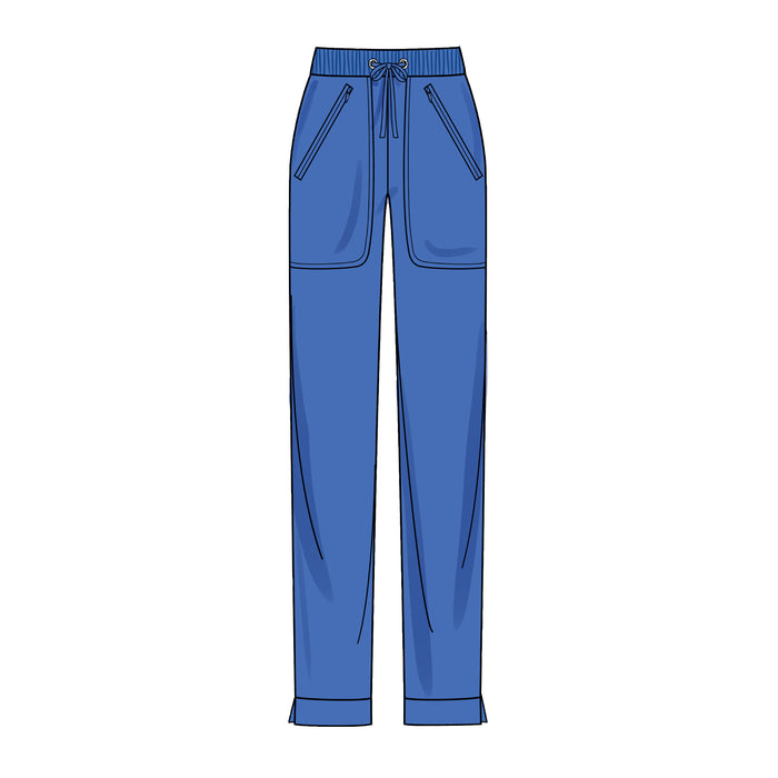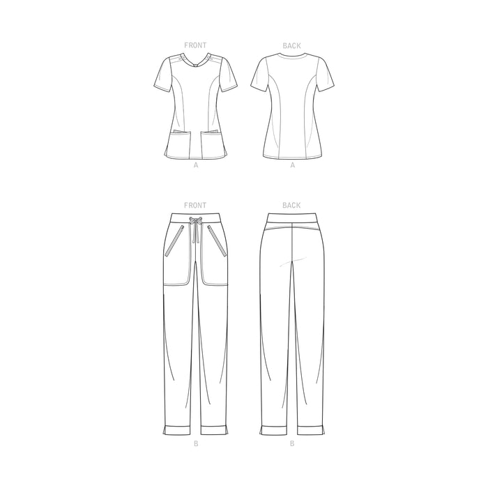 Misses' scrubs with shoulder yokes, bungee id badge loop & princess seams; pants have rib knit waistband & pockets with zippers.