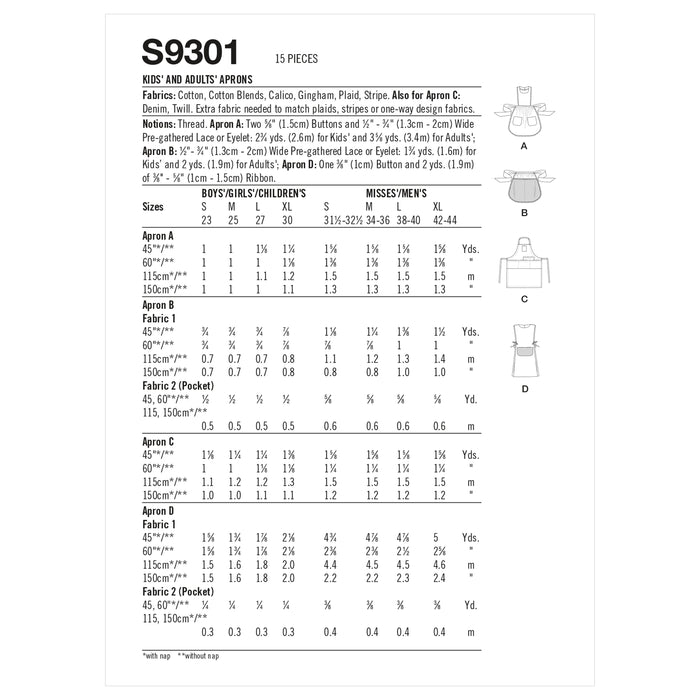 S9301 Kids' & Adults' Aprons. Size: S-XL / S-XL