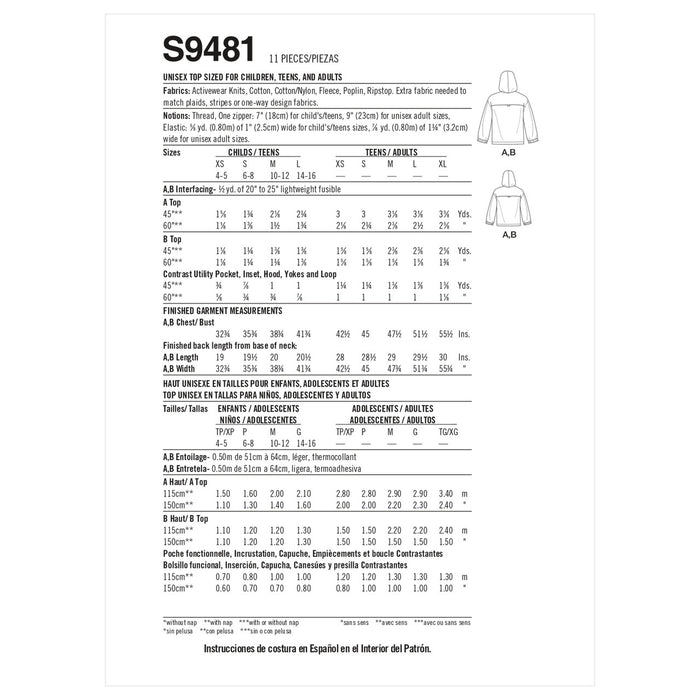 S9481 Unisex Top Sized for Children, Teens, and Adults