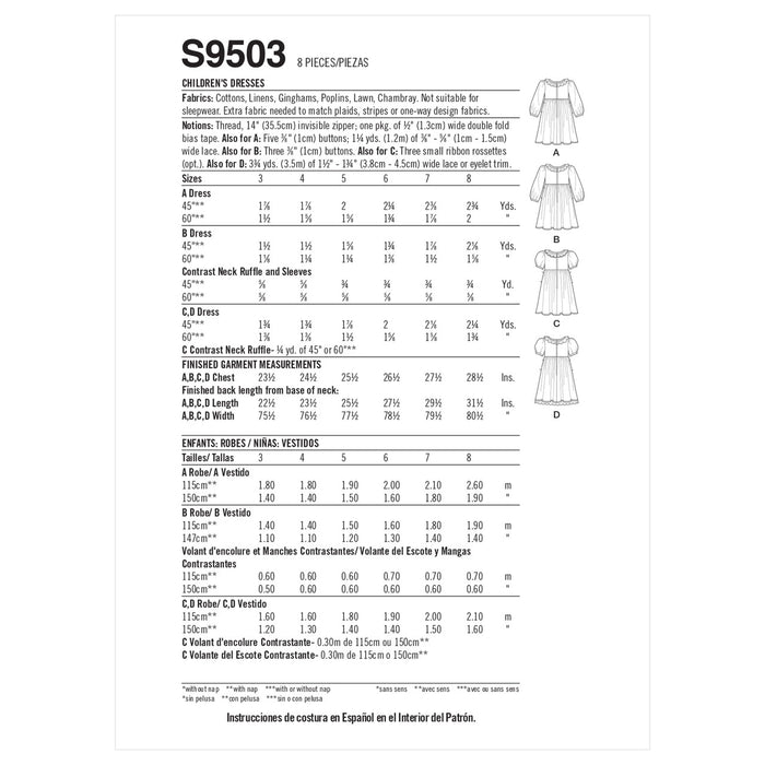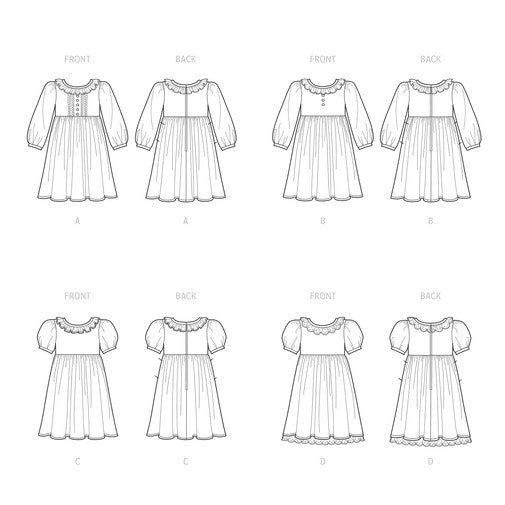 Ruffle collar details are featured on this raised waist dress with flared skirt. Zipper closure and long or short full sleeves are pleated to bias tape finish.