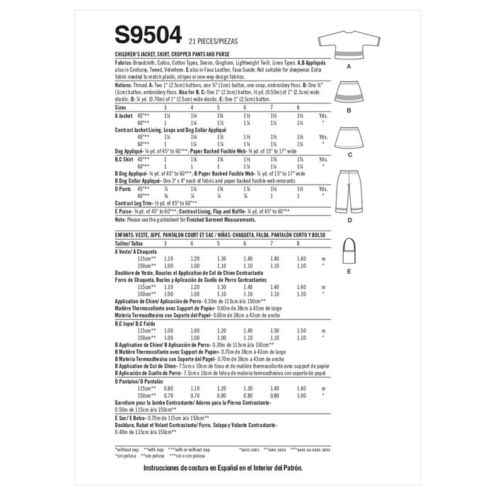S9504 Children's Jacket, Skirt, Cropped Pants and Purse