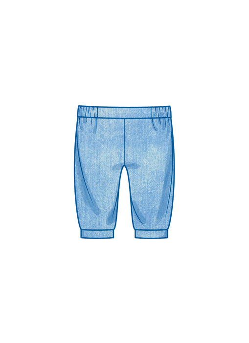 Create cute and adorable outfit for babies! Both top and dress have center back keyhole opening with button closure. Knit dress has sleeve bands. Pull-on pants have elastic waist and front slit or bands. Hat and headband are available in three sizes.