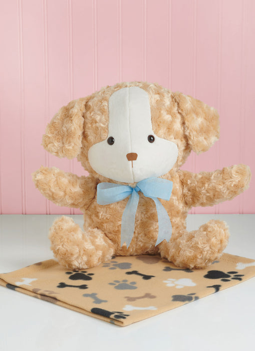 Adorable plush baby bear, bunny, kitty and puppy measuring approximately 14" (36cm) when seated are easy to sew from two main pattern pieces. All animals have safety eyes and ribbon bow accents; options include appliqued contrast faces and embroidered, appliqued or safety noses. Blanket accessory included for each fur baby. See envelope for more information.