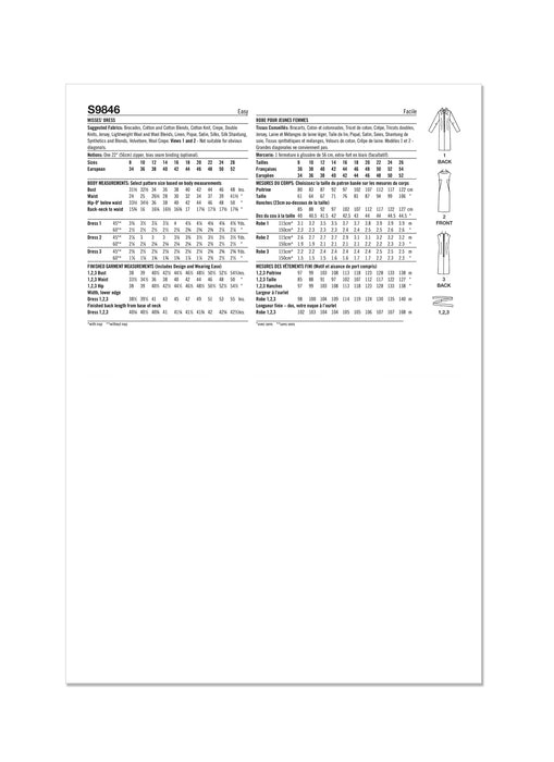 Vintage Simplicity 1960's Jiffy dress with three main pattern pieces. Simple to sew slim dress with high round neckline and back zipper has extended shoulder line and optional self tie belt. View 1 & 2 have a tie collar. View 1 has long set-in sleeves. View 2 & 3 are sleeveless. Authentic Vintage Reproduction includes additional sizes and cutting layouts.