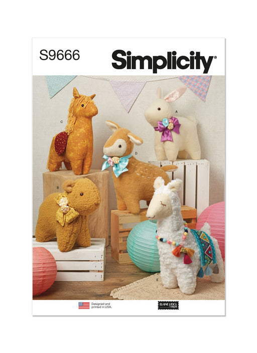 2.600 krAdorable plush bunny, bear, pony, deer and alpaca stand 10" (26cm) to 14" (36cm) tall. Bunny has yarn pom pom tail, bear and deer have safety eyes...