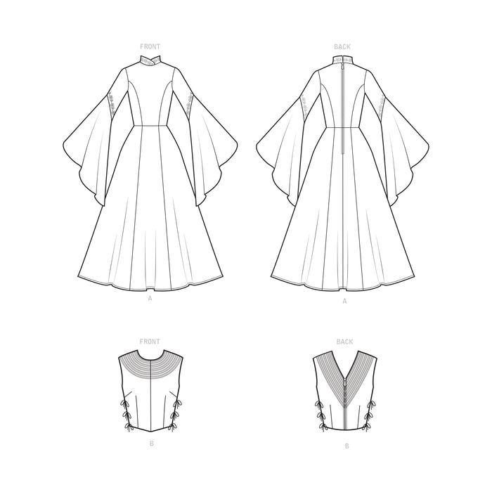 Take your rightful place in this fantasy gown with dramatic sleeves, worn with a back-zipped vest in luxe faux leather.