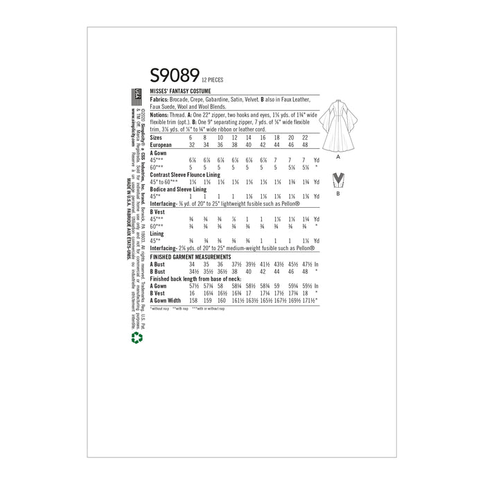 S9089 Misses' Fantasy Costume. Size: 32-48