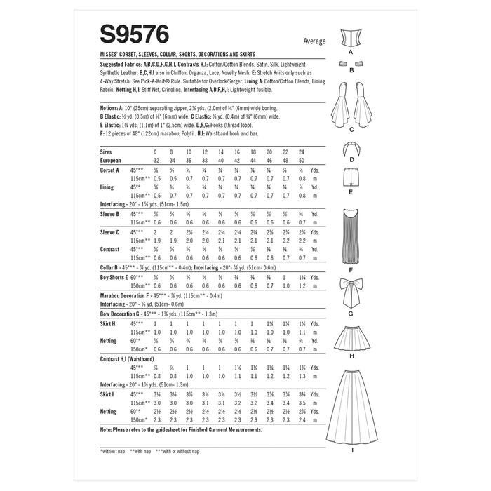 S9576 Corset, Sleeves, Collar, Shorts, Decorations and Skirts