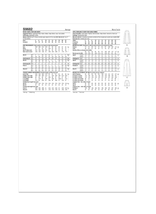 S9682 Misses' Skirts, Pants, and Shorts