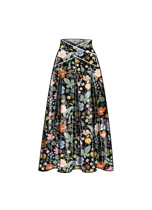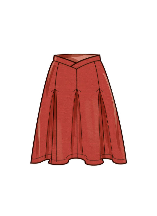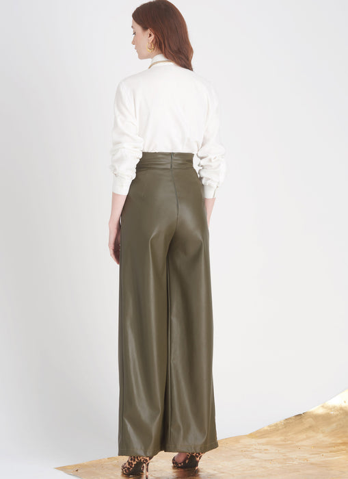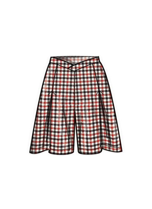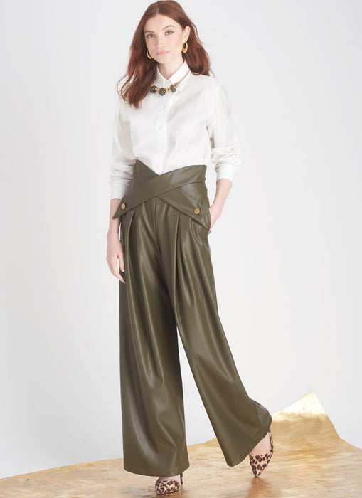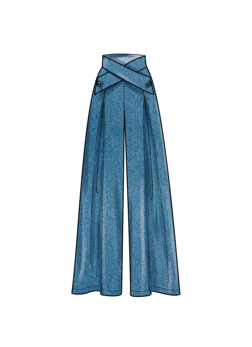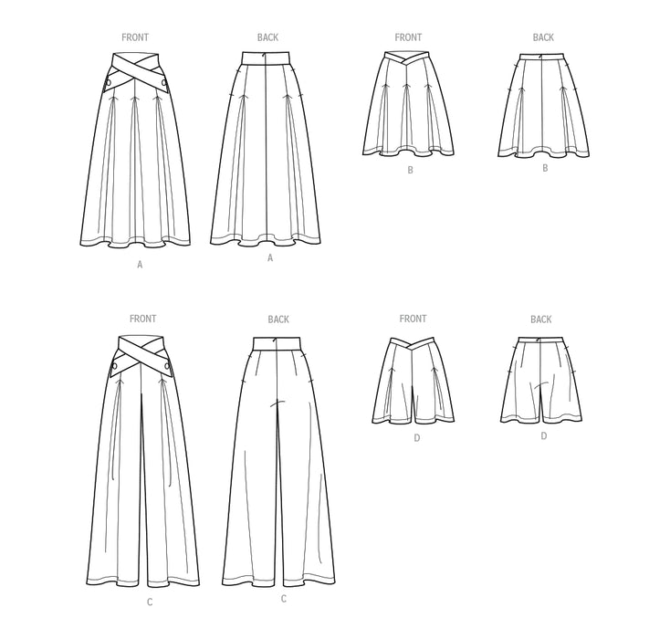 Versatile skirts, pants and shorts feature a shaped crossover waistband, invisible zipper, side pockets and soft pleats. Views A and C have button trim on waistband.