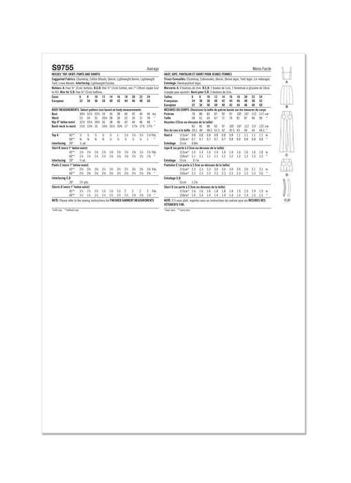 S9755 Misses' Top, Skirt, Pants and Shorts
