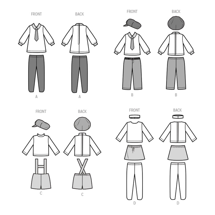 Groovy looks for 18" (46cm) dolls include A-line dress or top with contrast collar, sleeve bands and faux tie, pull on pants with faux belt, hot pants with built-in suspenders and newsboy hat. Round out the looks with knit long sleeve top with band collar, pull on A-line mini skirt with chain belt detail, knit tights and headband. See envelope for more information.