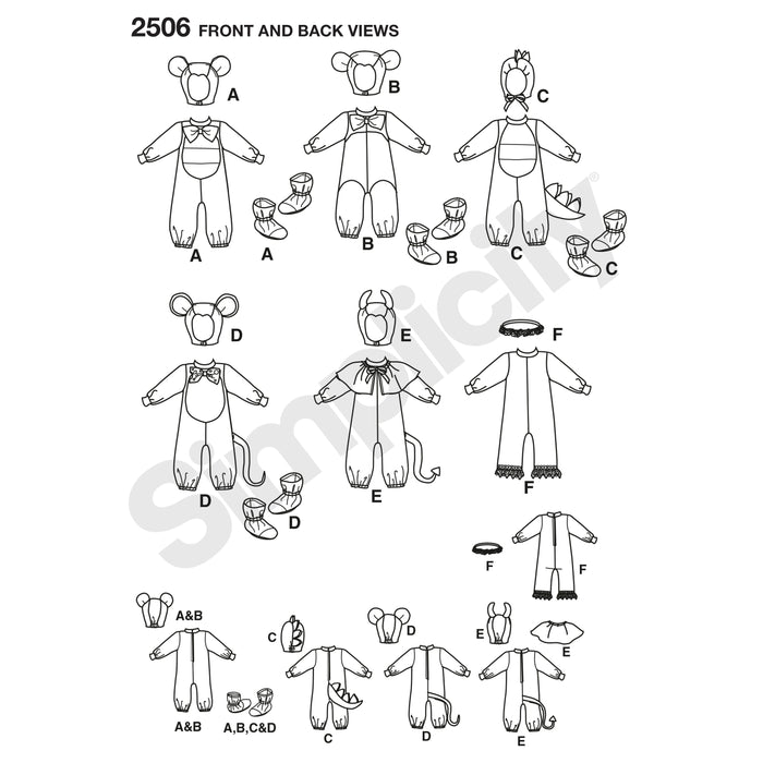 Toddlers' costumes, including mouse, devil, dragon, angel, bear/panda.