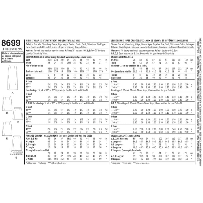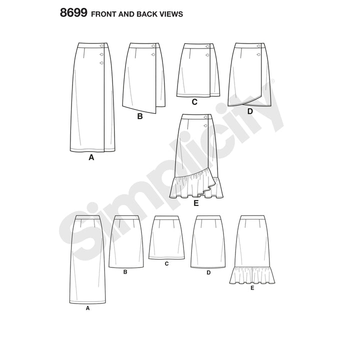 8699 Misses' Wrap Skirts with Length Variations. Size: 32-48