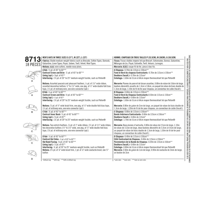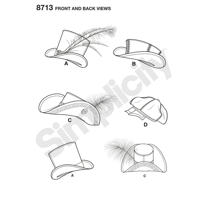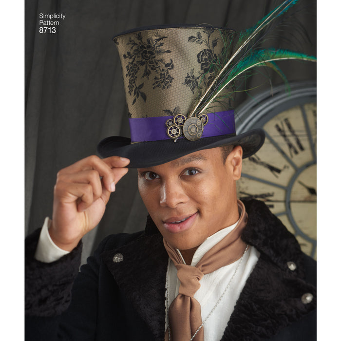 Arkivestry brings great design details to Men's hats in three sizes S (21"), M (22"), and L (23"). This pattern offers four styles—a top hat, topper, pirate, and po' boy hat.
