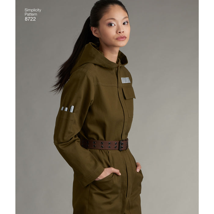 Prepare for flight with these unisex flight suit coverall costumes for Misses, Men, and Teens, unisex sizes XS to XL. Pattern features optional welt pockets, knee and chest pockets, and hood, and costume can be embellished with appliques and trims.