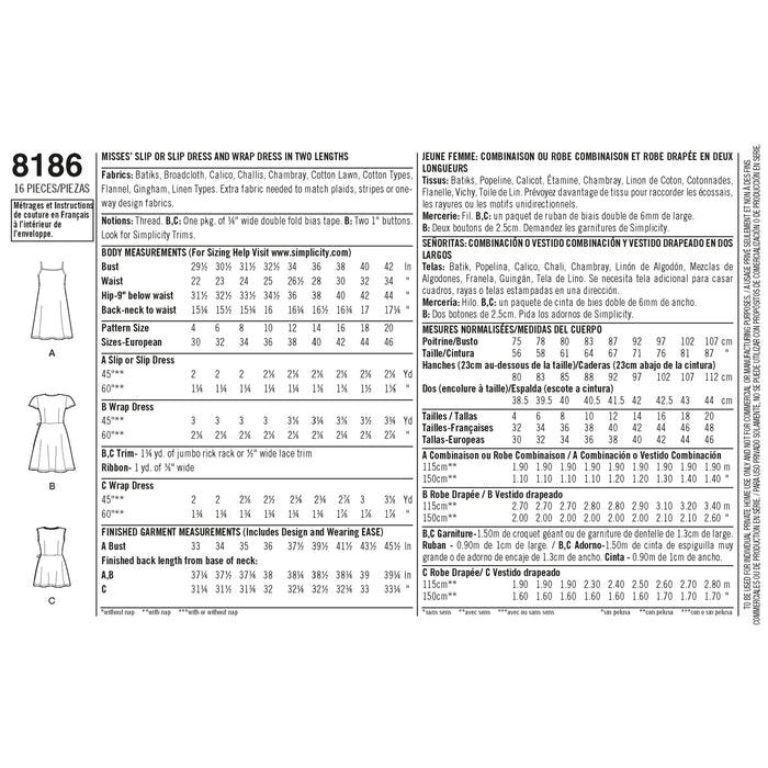 8186 Misses' Dottie Angel Frock Wrap and Slip Dress. Size: 30-46