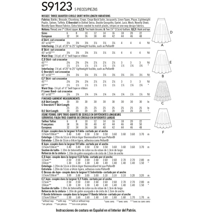 S9123 Misses' Skirts. Size: 32-48