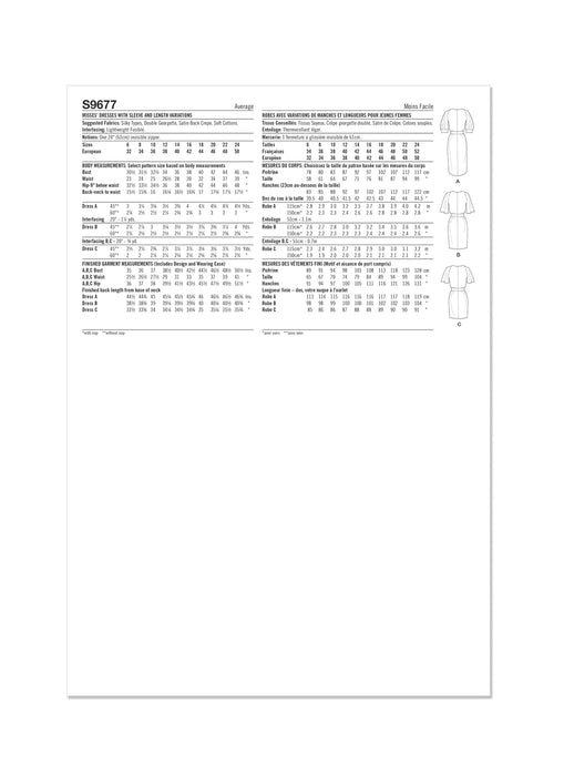 S9677 Misses' Dresses with Sleeve and Length Variations