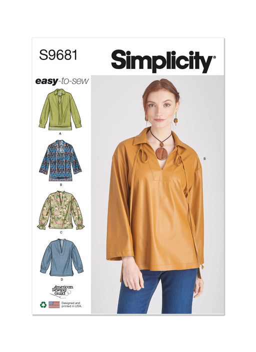 S9821 Misses' Blouse with Collar, Sleeve and Hemline Variations