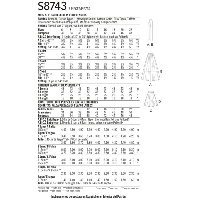 S8743 Misses' Pleated Skirts. Size: 32-48