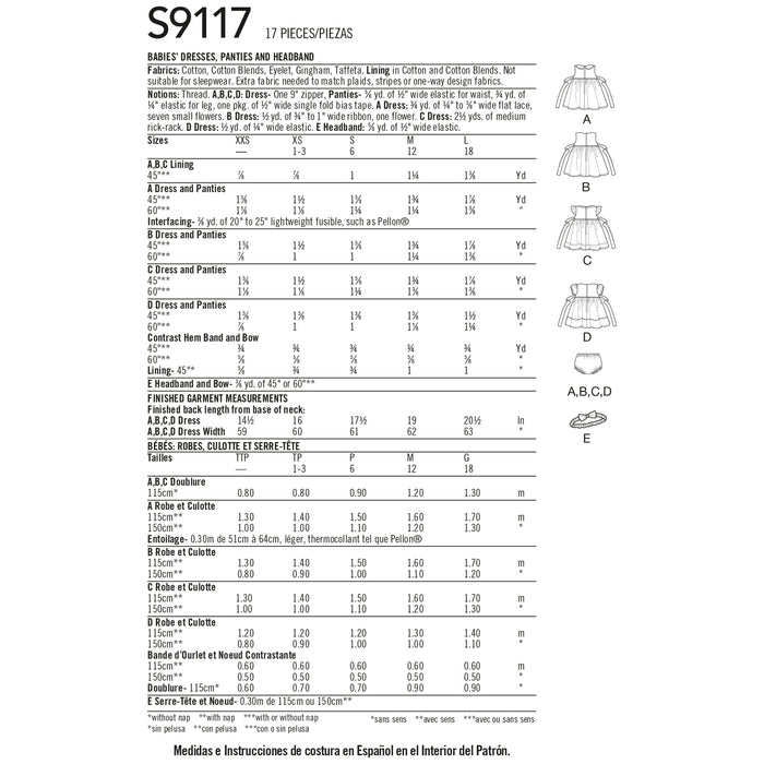 S9117 Babies' Dresses, Panties & Headband. Size: XXS-L (0-18 m)