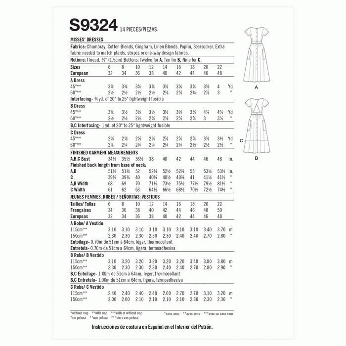 S9324 Misses' Dresses. Size: 32-48