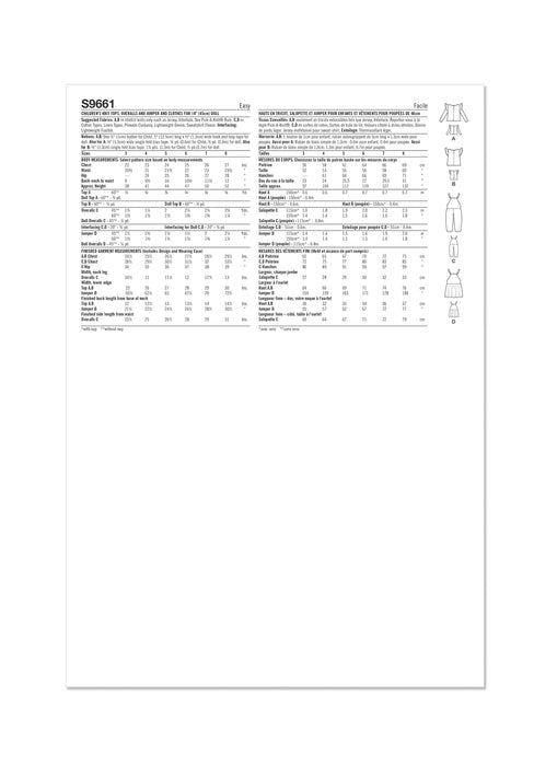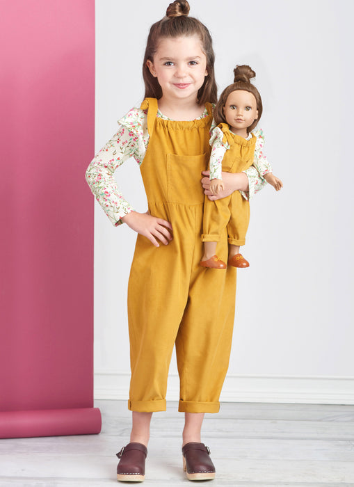 S9661 Children's Knit Tops, Overalls, and Jumper and Doll Clothes for 18" Doll